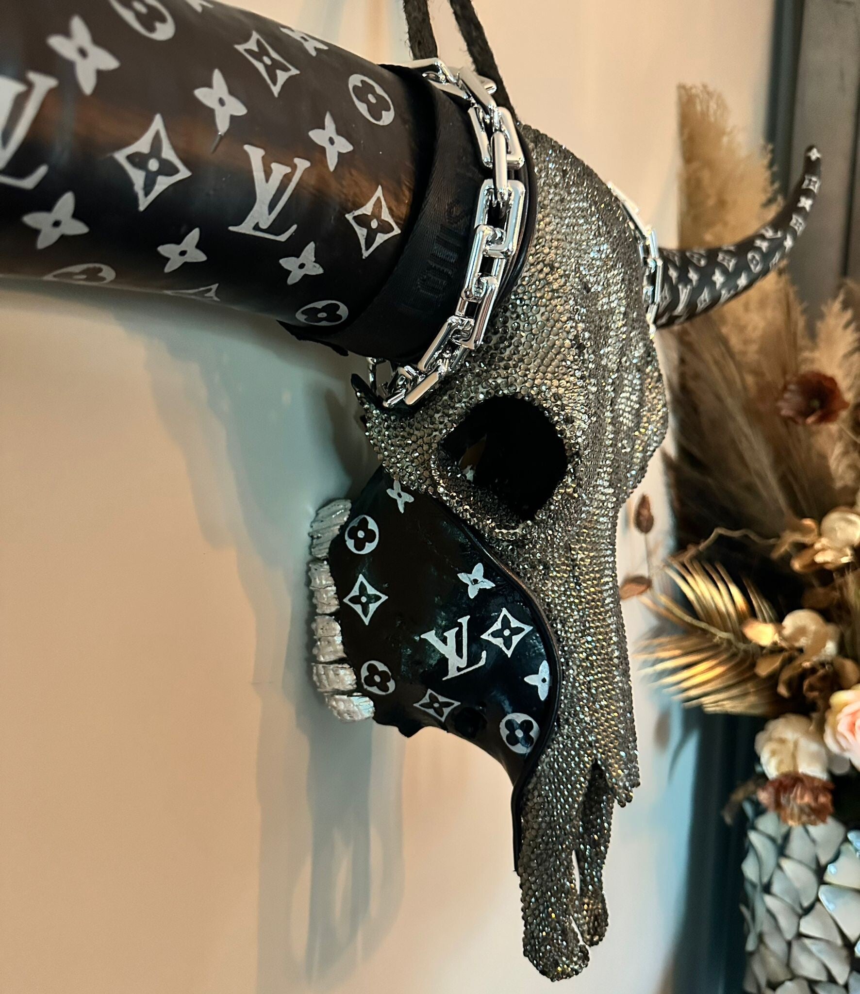Originele Texas Longhorn skull bekleed met stenen, iedere steen is met de hand aangebracht op dit kunstwerk.