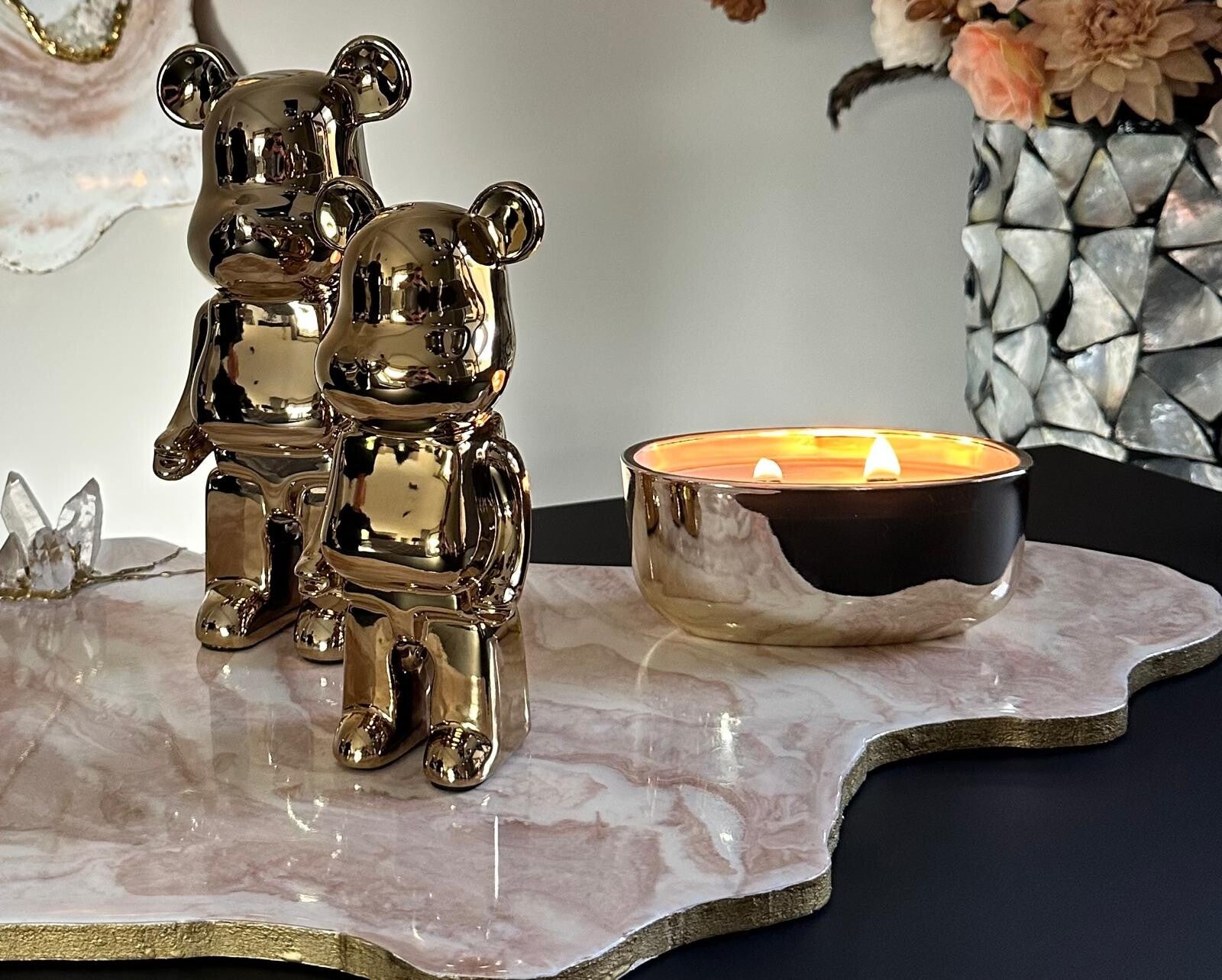 De twee glanzende beertjes hebben een moderne, minimalistische uitstraling en passen perfect op een dressoir, salontafel of kinderkamer. Hun zachte goudtint en verfijnde afwerking zorgen voor een rustige, stijlvolle look.